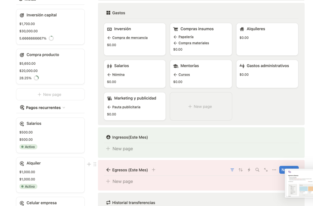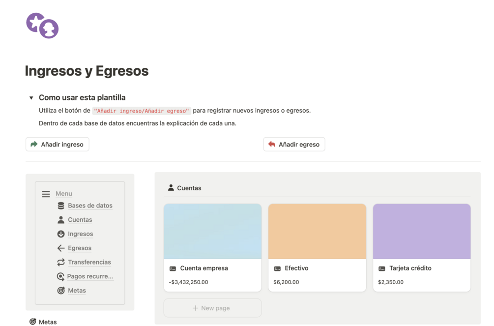 Esta plantilla te ayuda a gestionar de manera eficiente los ingresos y egresos de tu empresa en Notion. Con un sistema claro y automatizado, podrás: