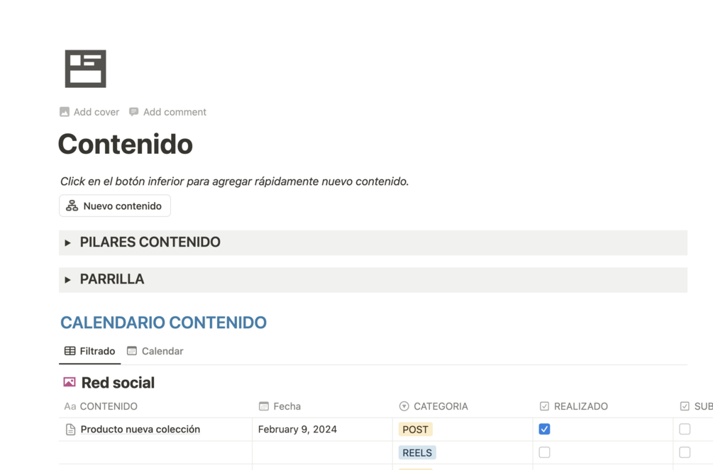 • 🎯 Organizar por categorías como campañas, tipo de contenido y público objetivo.