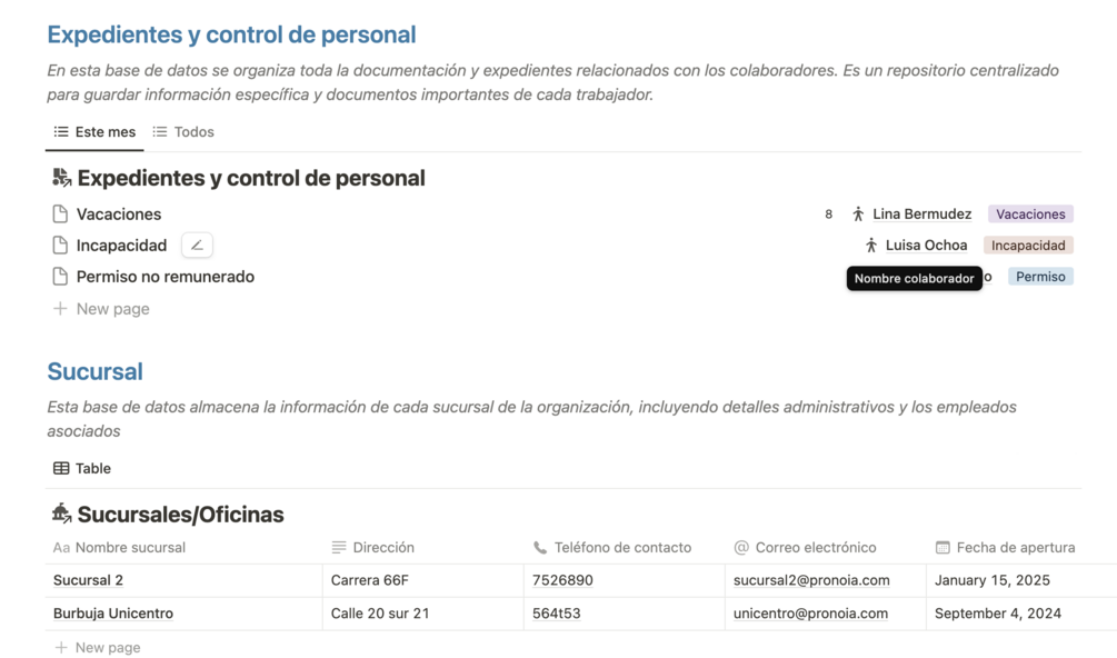 ✅ Expediente del personal filtrado por cada colaborador para un acceso rápido y ordenado.