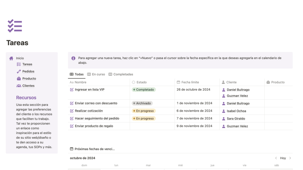 Con esta plantilla, optimizarás tus procesos, simplificarás el flujo de trabajo y tendrás un control total sobre cada aspecto de tu negocio. ¡Lleva la gestión de tu empresa al siguiente nivel con Notion!